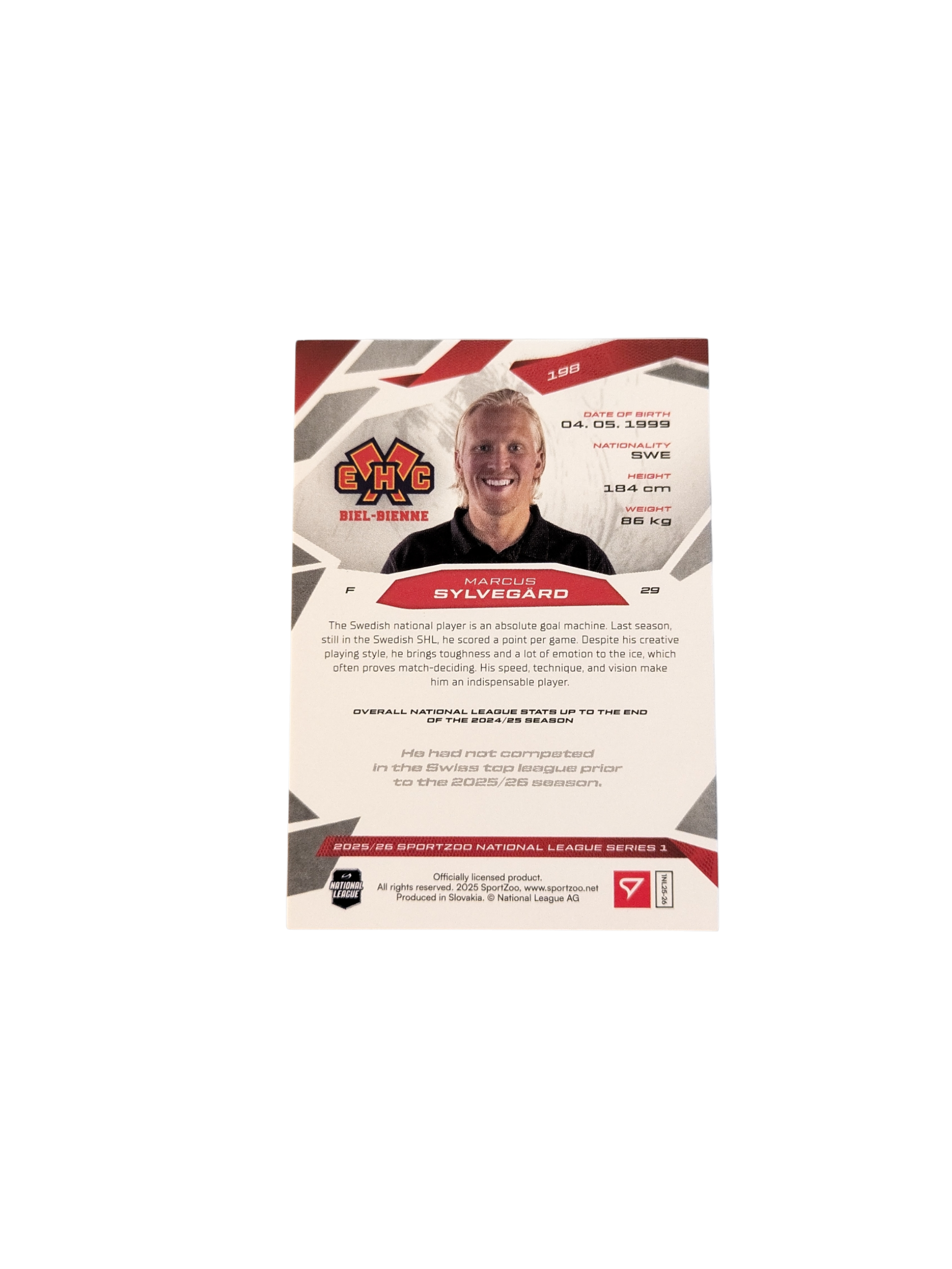 2026 SportZoo National League Biel Bienne Marcus Sylvegard 07/20 Red card