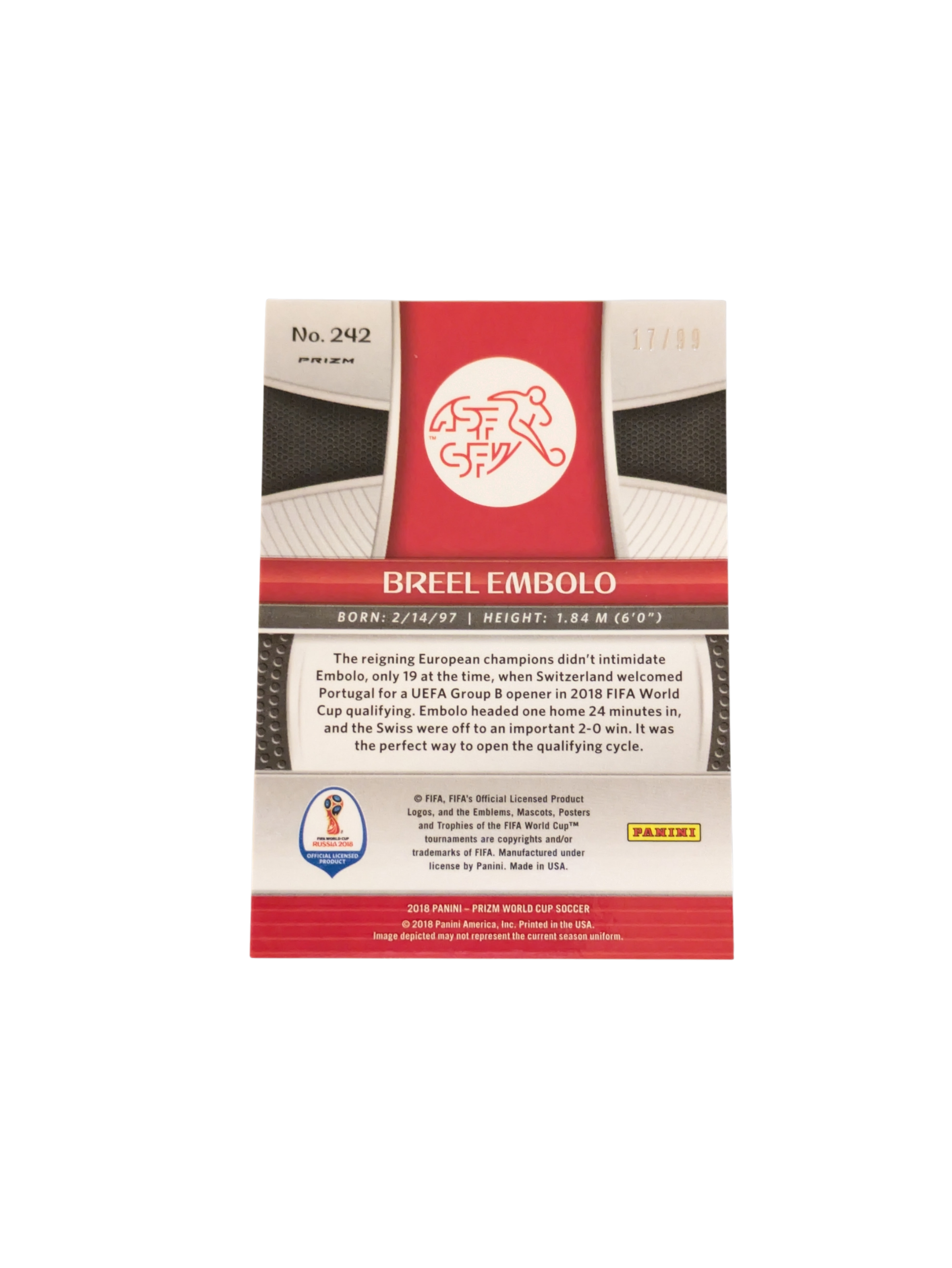2018 Panini Prizm FIFA World Cup Russia Switzerland Breel Embolo #242 17/99 card
