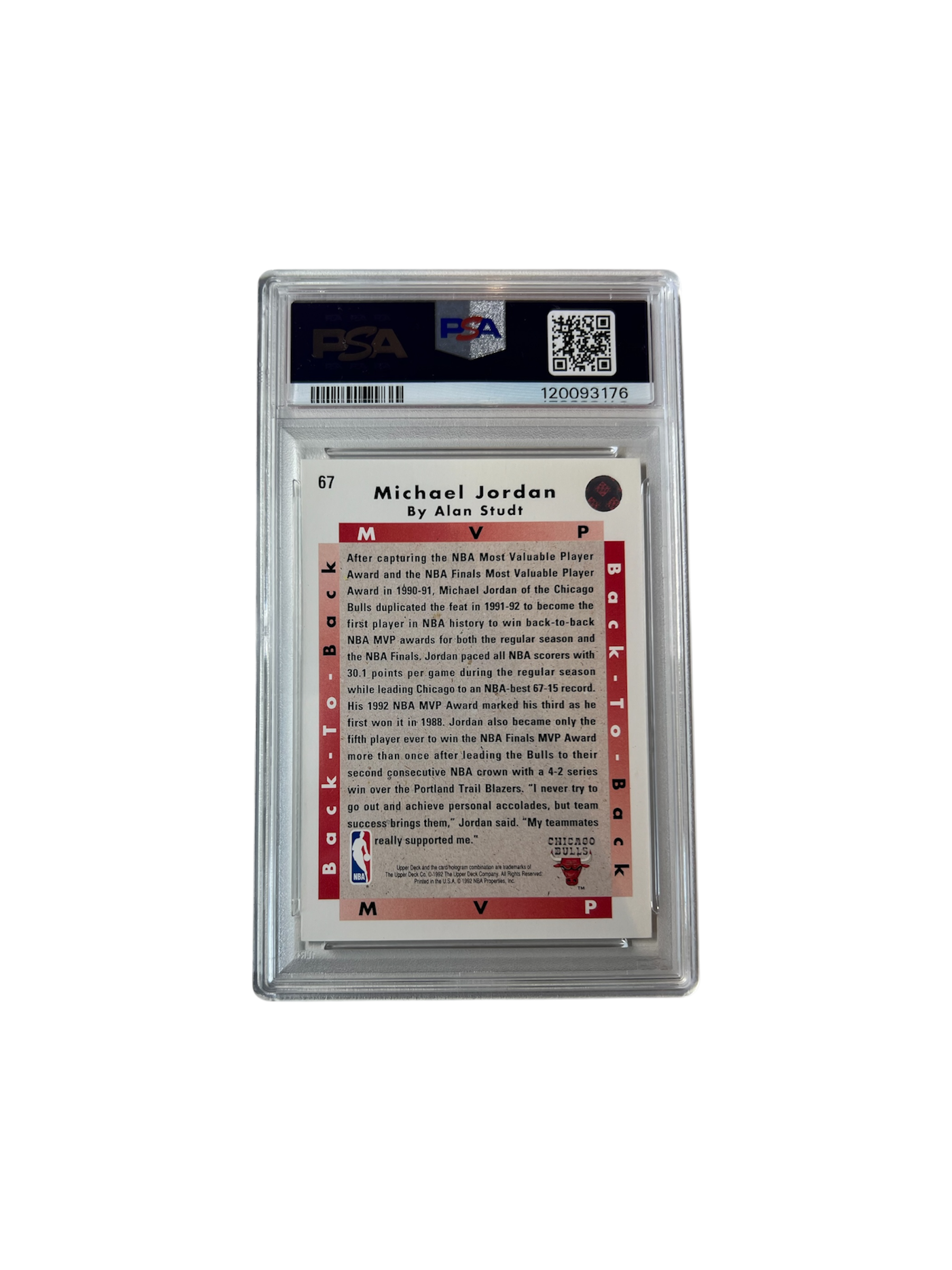 1992 Upper Deck Michael Jordan MVP #67 PSA Card