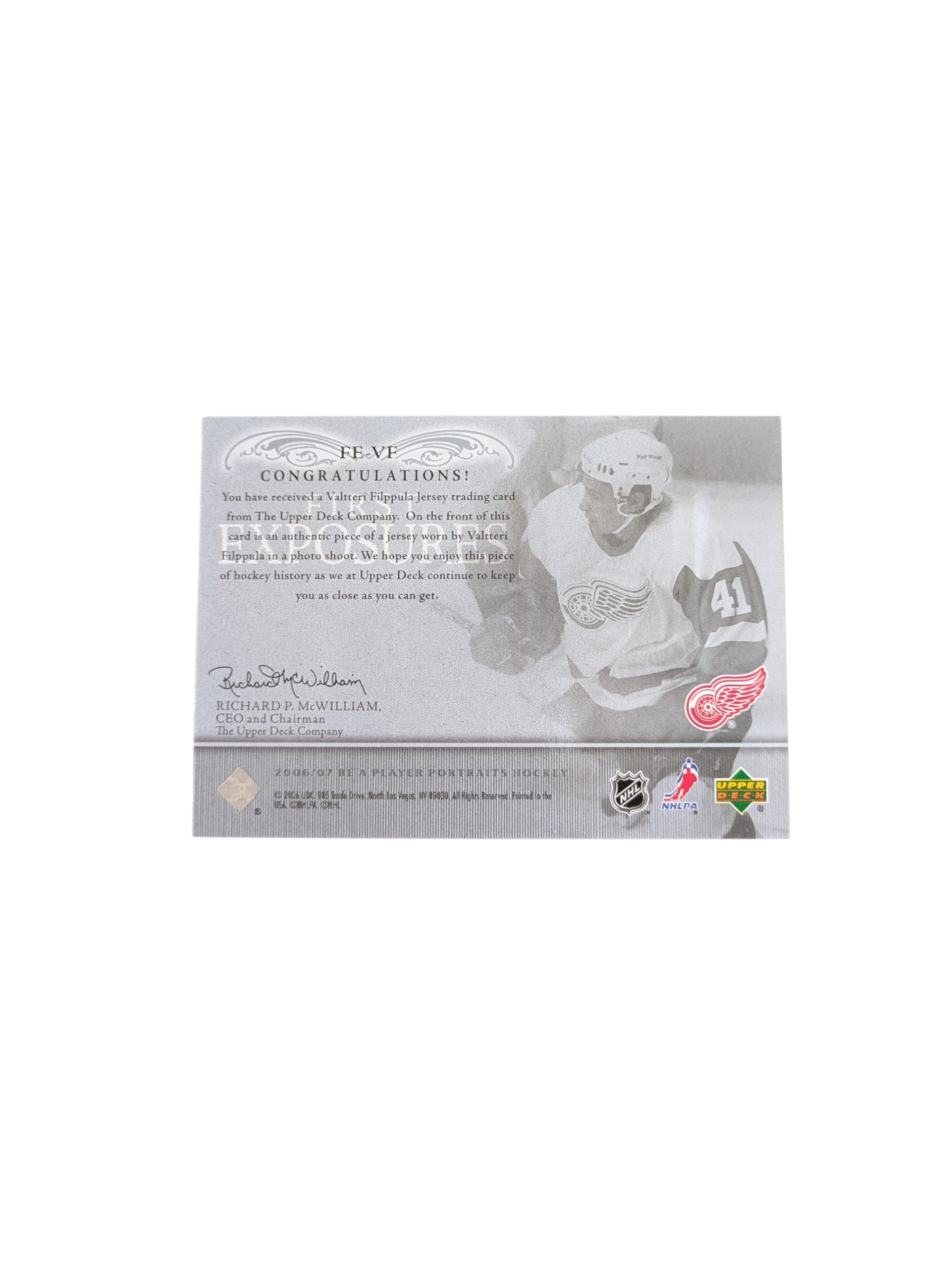 2006 Upper Deck Be a Player Detroit Red Wings Valtteri Filppula Patch card