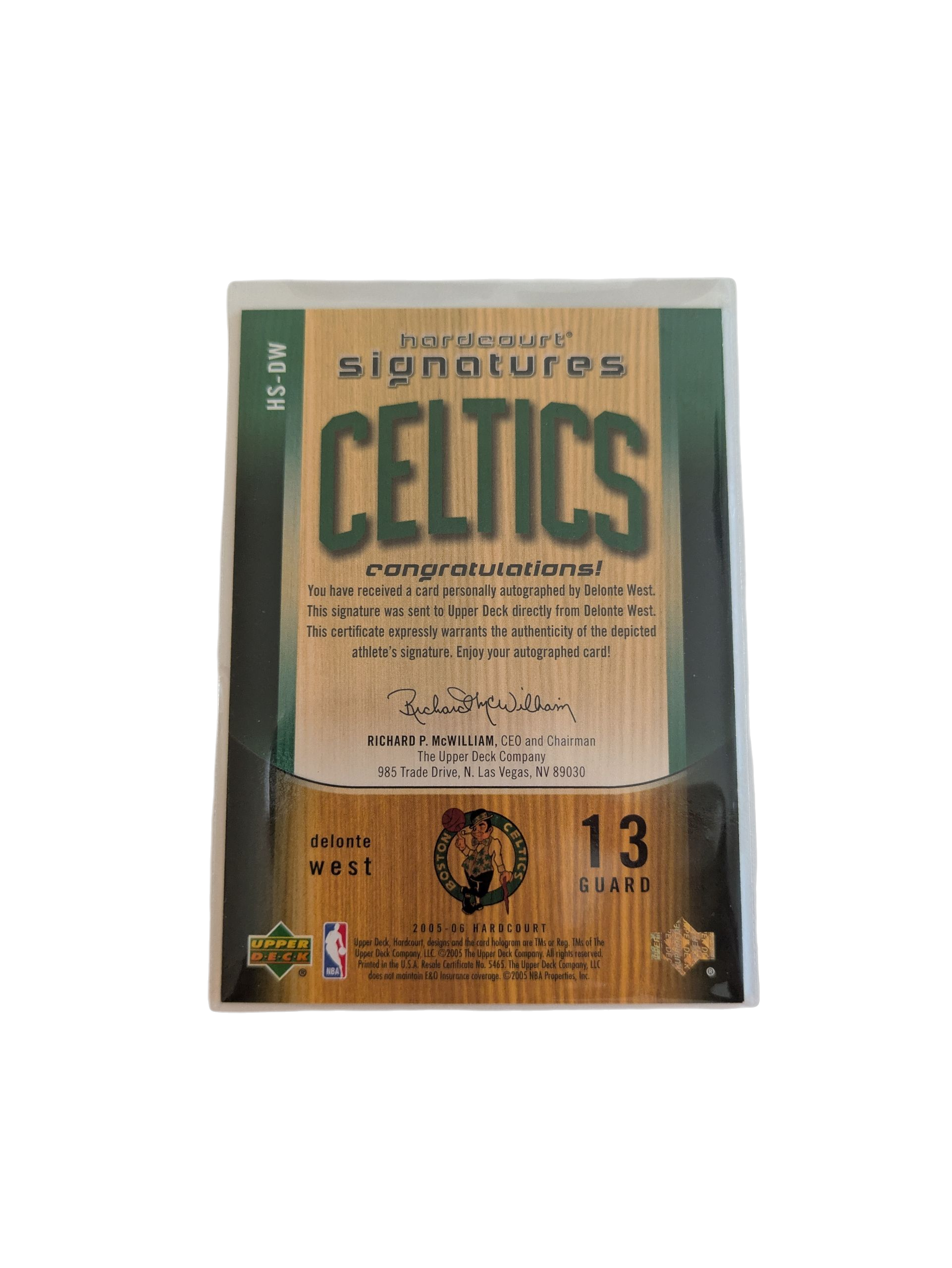 2005 Upper Deck Hardcourt Signatures Boston Celtics Delonte West Auto Card