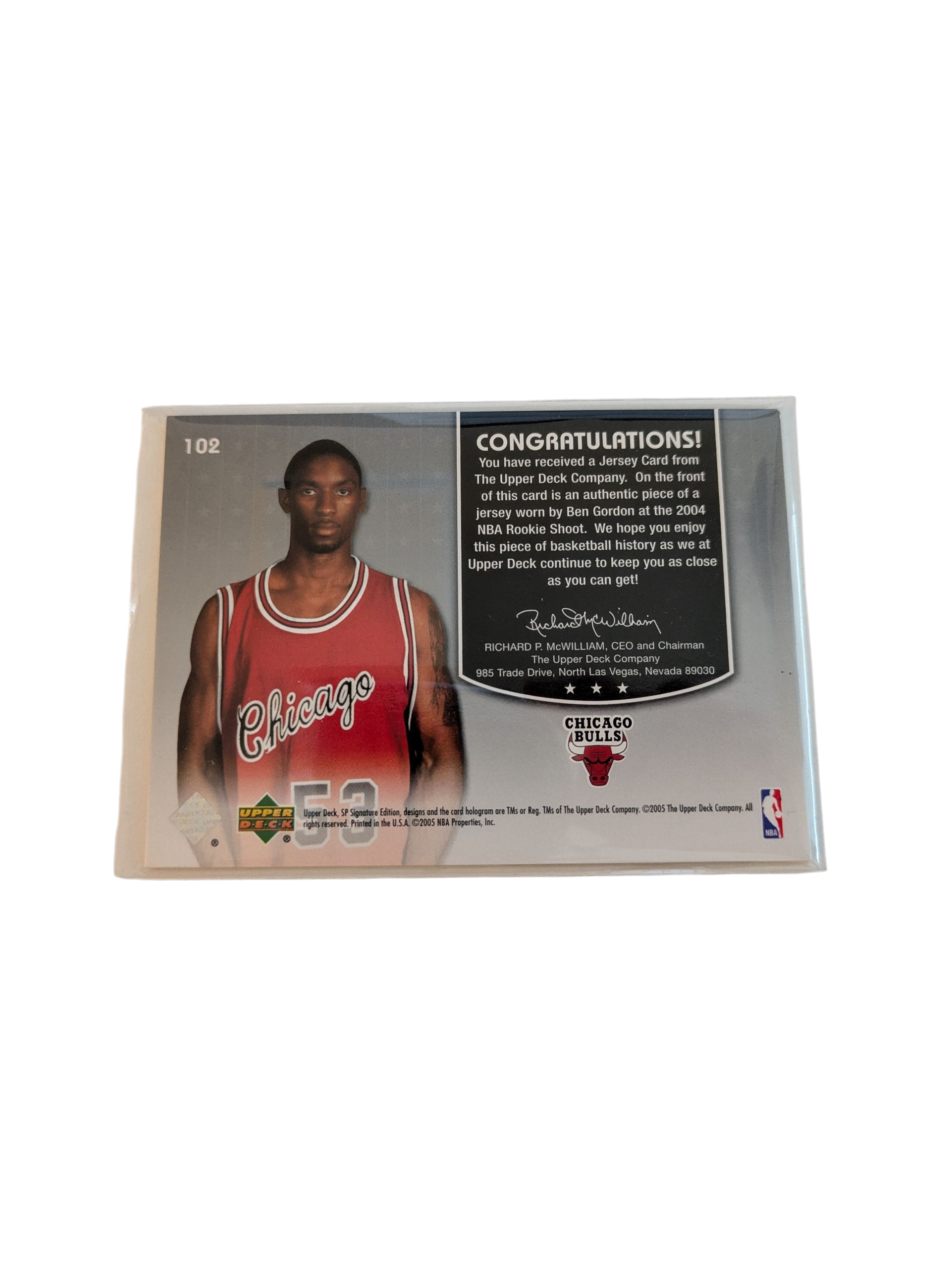 2005 Upper Deck SP Signature Edition Chicago Bulls Ben Gordon Patch Card