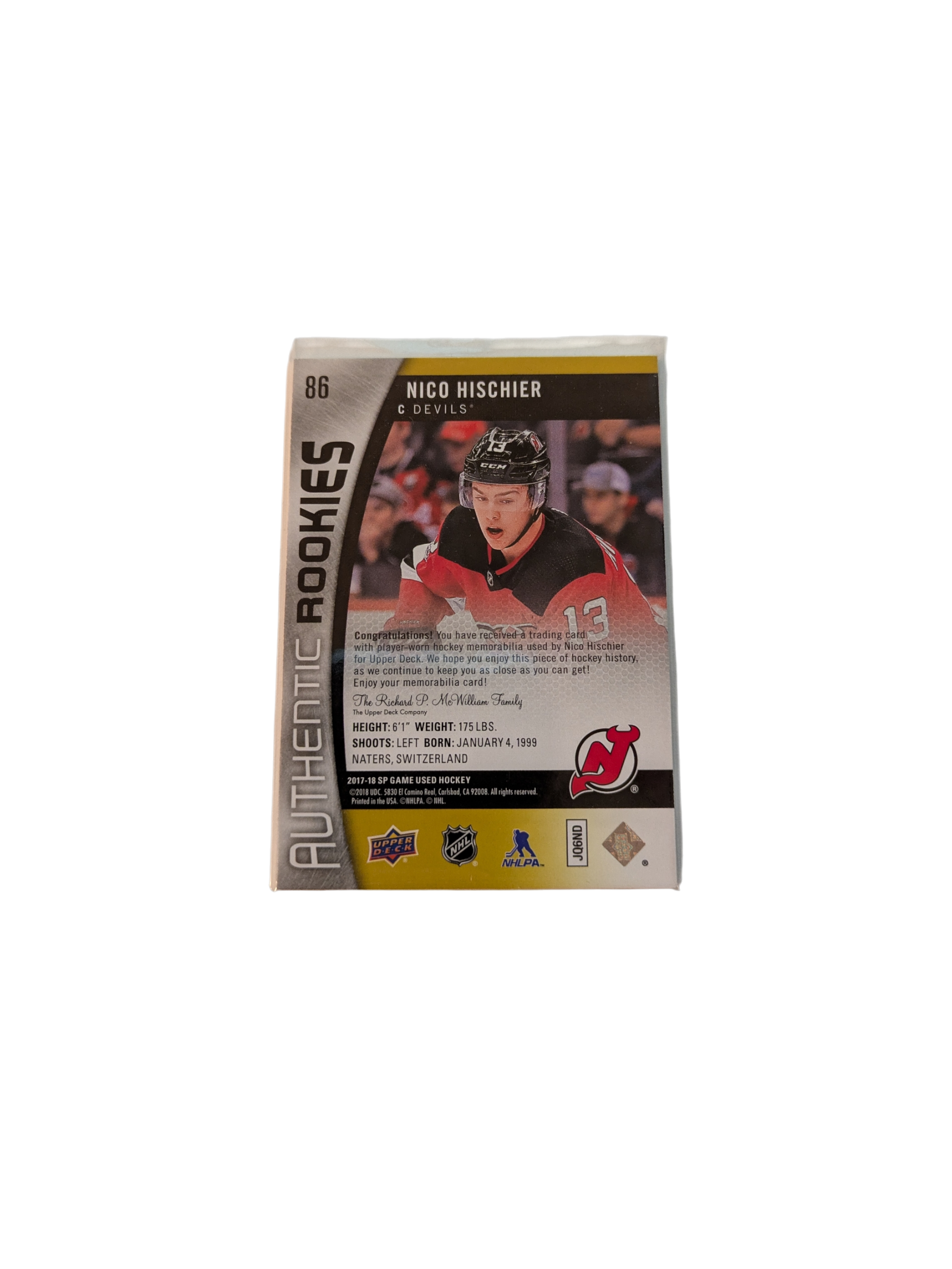 2017 Upper Deck Authentic Rookies New Jersey Devils Nico Hischier Jersey /199 Patch card