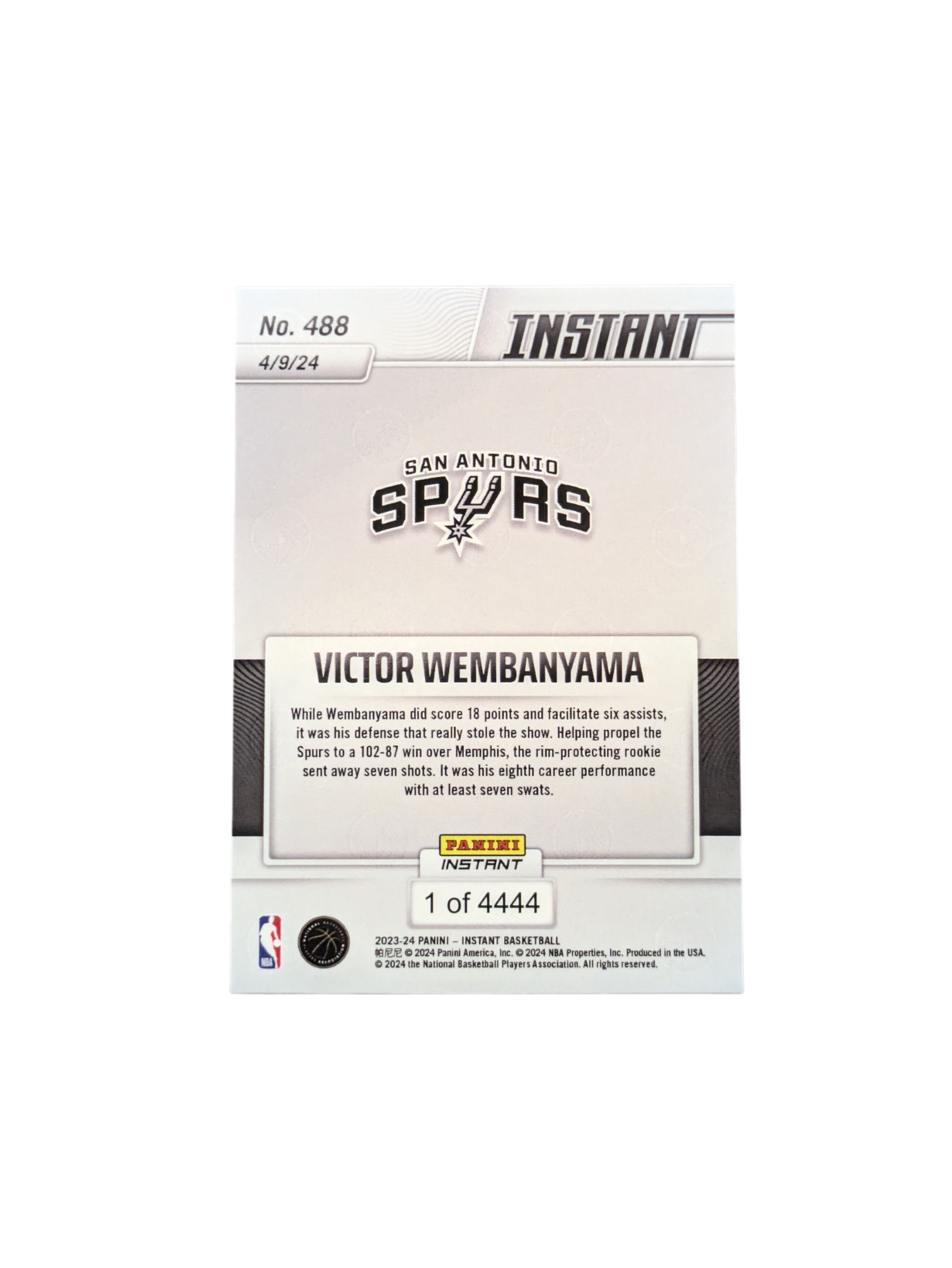 2023/24 Panini Instant San Antonio Spurs Victor Wembanyama #488 1/4444 card