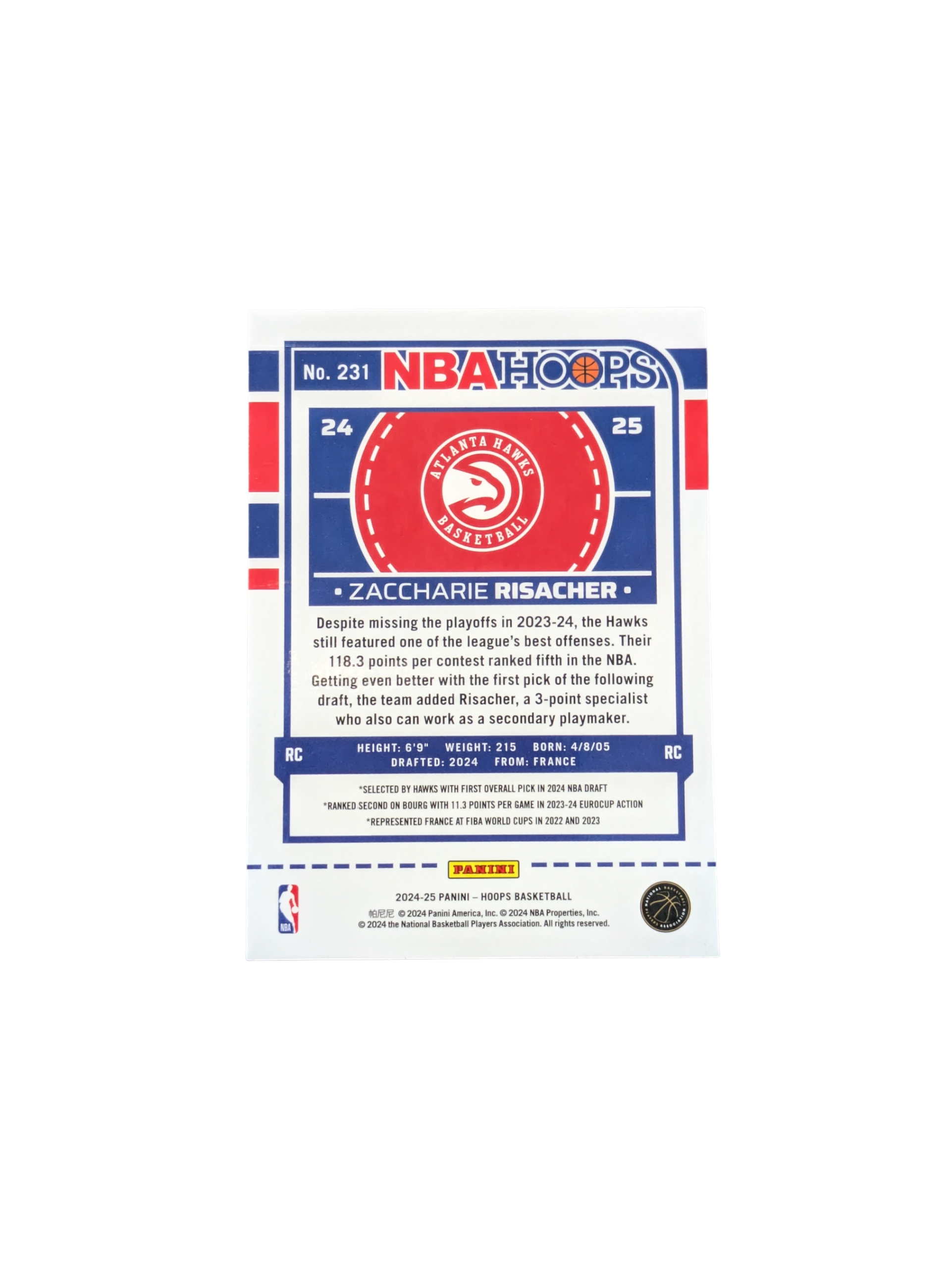 2024 Panini NBA Hoops Atlanta Hawks Zaccharie Risacher #231 Chrome Rookie card