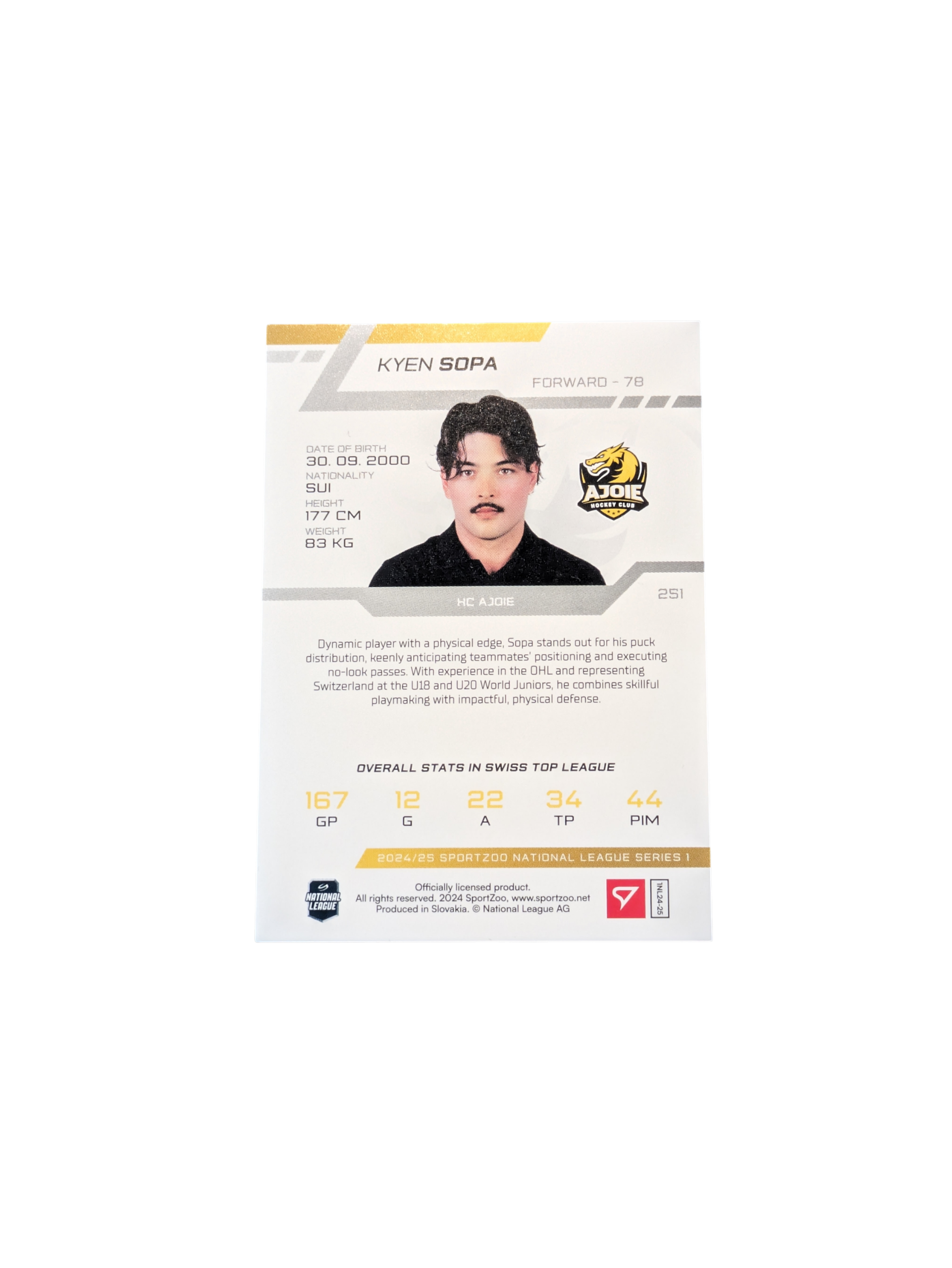 2025 SportZoo National League Ajoie Kyen Sopa 26/30 Blue card