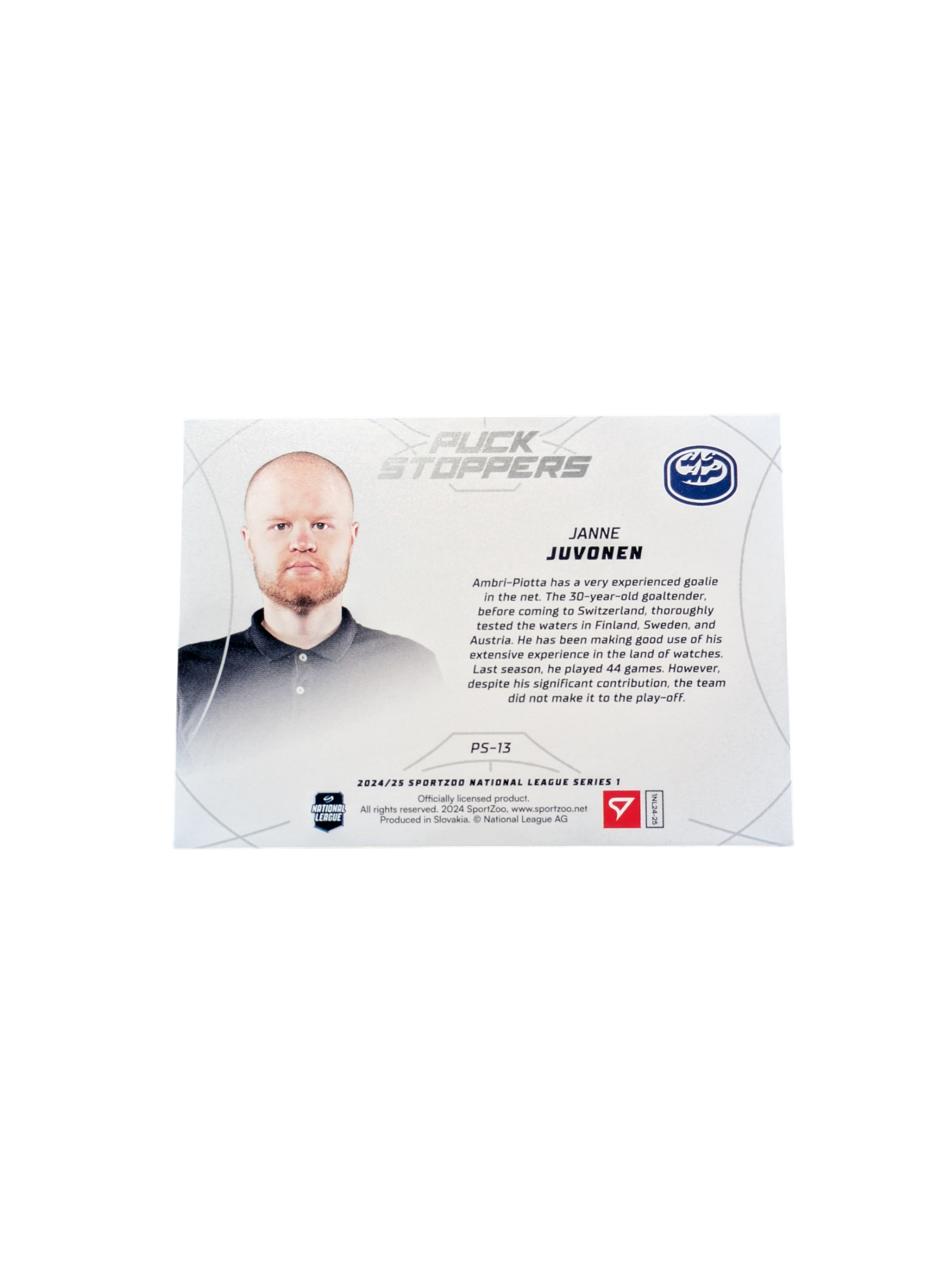 2025 SportZoo National League Ambri Piotta Janne Juvonen 33/75 card