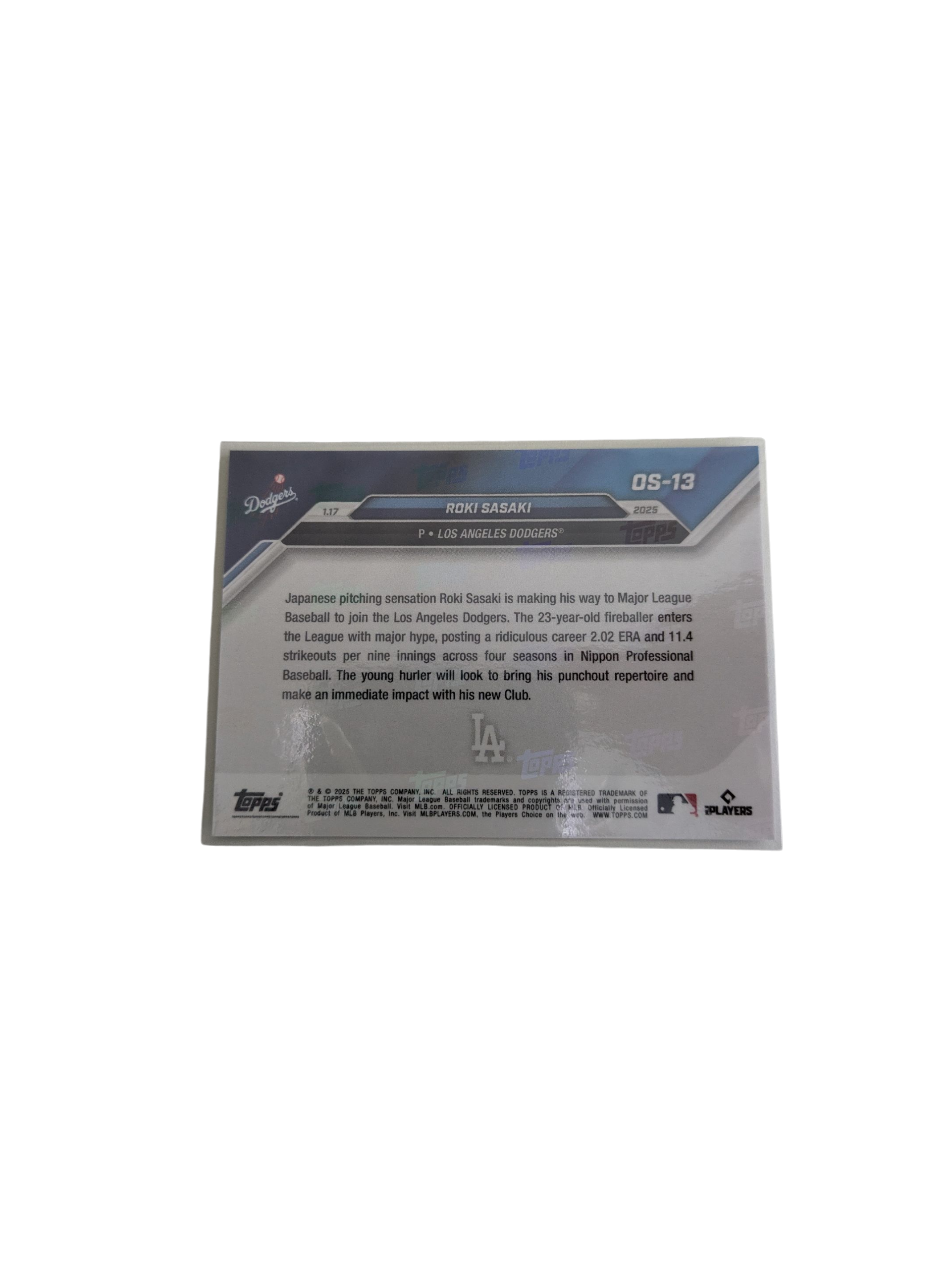 2025 Topps Los Angeles Dodgers Roki Sasaki signs with Dodgers Card