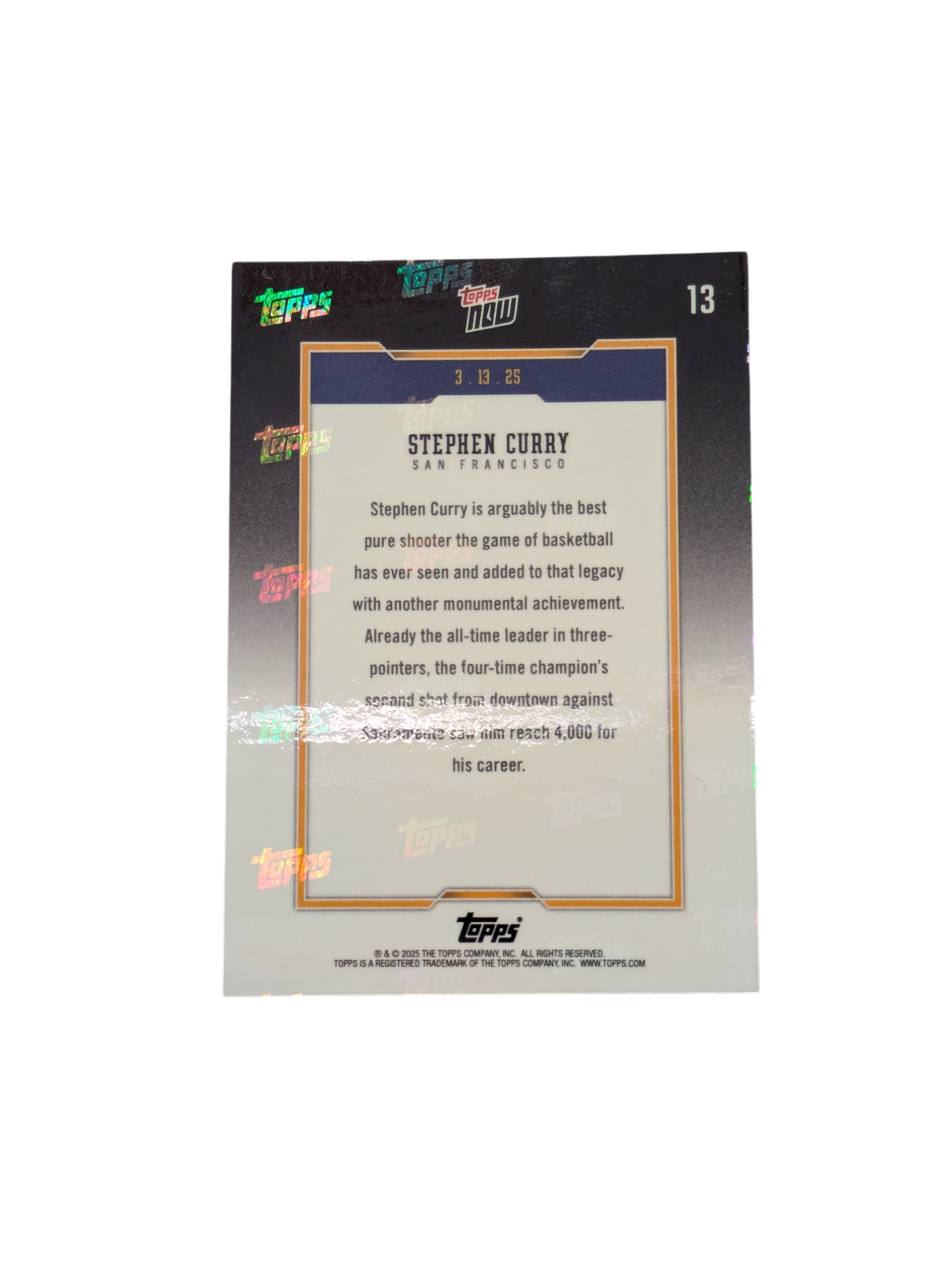 2025 Topps Now Golden State Warriors Stephen Curry 4000 3 Points card