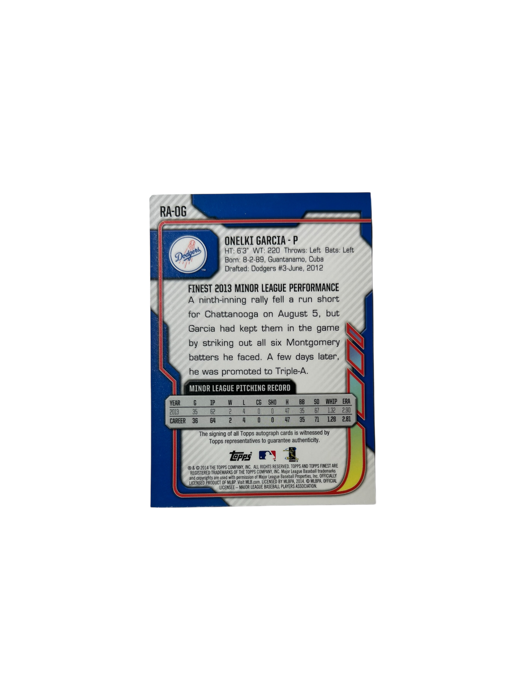 2014 Topps Los Angeles Dodgers Onelki Garcia Rookie AUTO card